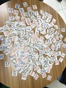- Kartonun kesimi bittikten sonra silinmeyen ve görülecek kadar kalın olan bir kalem tercih edilmelidir. Daha sonrasında kesilen kartonların üzerine tek ve çift sayılar yazılmalıdır. Tek ve çift sayıların sayısı isteğe göre ve yaş grubuna göre değişebilir. Yazılan sayıların mutlaka okuna bilir ve görülebilecek şekilde olmalıdır.