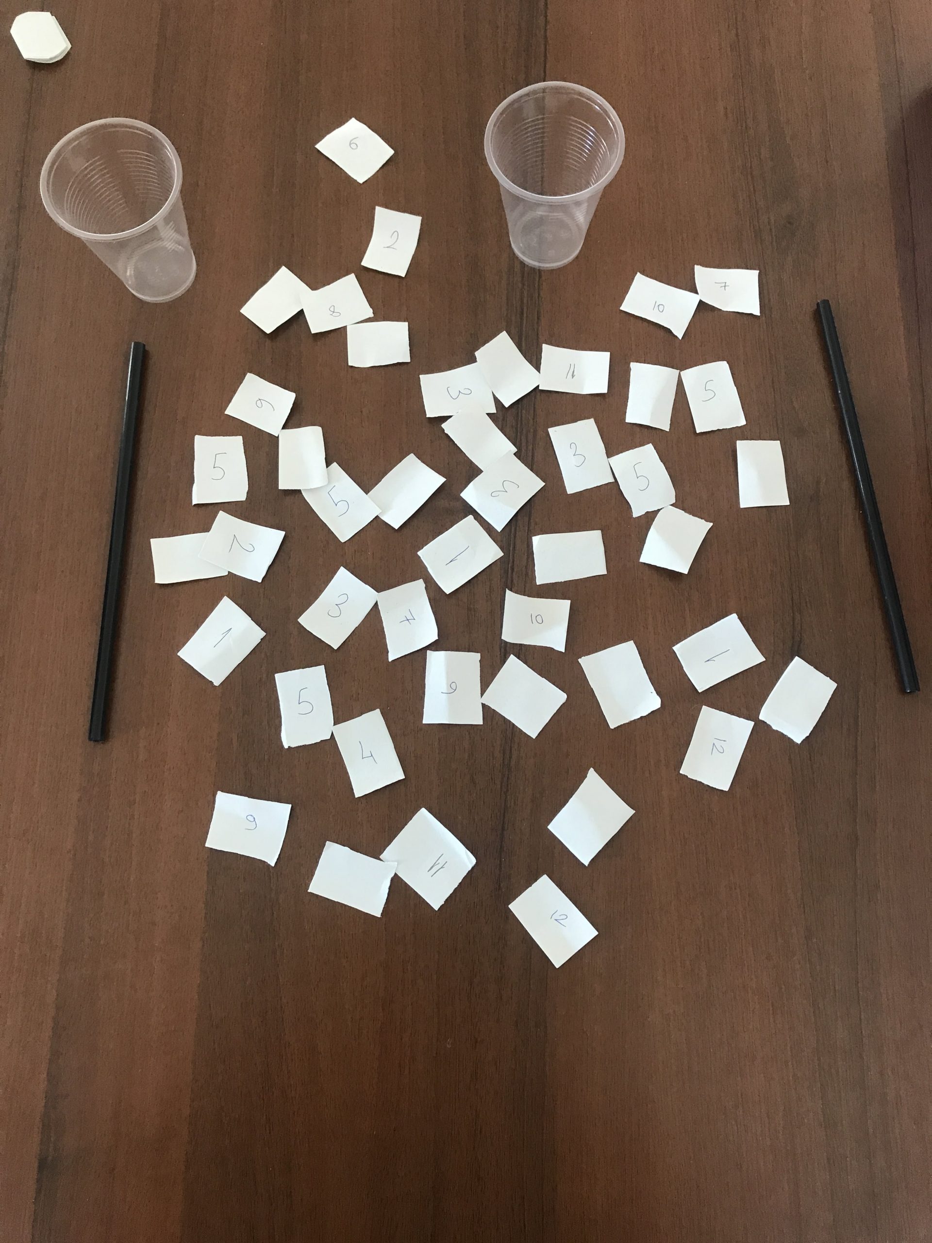 - Ben örnek olarak 1 den 12 e kadar sayılar yazdım, bu sayılardan 2,3,4 tane olacak şekilde ve birazda boş olacak şekilde yazdım. Oyunu oynayanlara 1-2 dakika dolana kadar 1 den başlayarak sırayla 12 ye kadar toplamaları gerektiğini söyledim. Sayıları doğru şekilde toplayan kişiyi ve ya en çok toplayan kişiyi tebrik ettik.